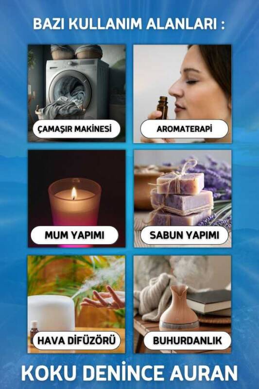 Bir çok Kullanım Alanı Mevcuttur Ürünümüz Tamamen Koku Formu ile Kullanılmak için özel tasarlanmıştır. Buhurdanlık kokusu, oda difüzörlerinde esans , sihirli kürede esans solüsyonu , hava nemlendiricilerde esans koku, vileda suyunda koku sulu süpürgede esans ve mum esansı, sabun esansı , parfüm esansı, oda kokusu esansı koku yağı, bambu oda kokusu esansı, oto kokusu esansı, sabun esansı, kokulu taş yağı olarak da kullanılmaktadır.