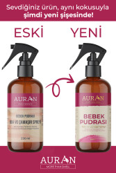 Auran Bebek Pudrası Oda ve Çamaşır Spreyi şişesi özel olarak seçilmiş kalıcılığı artırılmış özel formül ile üretilmiş muhteşem bir kokudur.