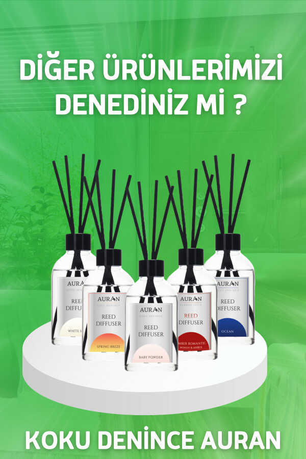 Özel Reed Diffuser Black Vanilla Çubuklu Oda Kokusu’nun, kolay kullanım sunan tasarımı Auran Amber Romantik Bambu Çubuklu Oda Kokusunun, çubuklarının haftada bir ters çevrilmesi daha iyi koku yayılımı sağlar.