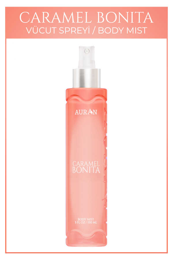 Kullanım Talimatı: Auran Caramel Bonita Vücut Spreyi, temiz ve kuru cilde; bilek, boyun ve tüm vücut bölgelerine 15–20 cm mesafeden püskürtülerek uygulanır. Gerektikçe gün içinde tekrar kullanılabilir.