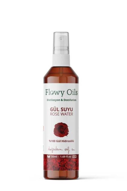 Flowy Oils Gül Suyu 50 ML cam damlalıklı amber korumalı şişede gelmektedir.