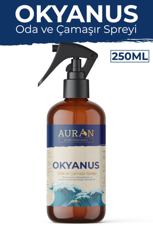 Auran Okyanus Oda ve Çamaşır Spreyi 250ML şık ambalajında esansiyel uçucu yağlar ile üretilmiştir.