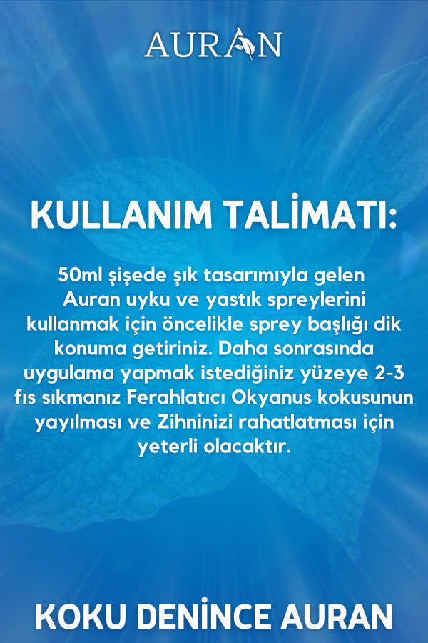Gelince Haber VerYoğun bir günün ardından yatağa uzanıldığında, rahat bir uykuya hızla dalmak herkesin hayalidir. Auran Uyku ve Yastık Spreyleri bu hayalinizi gerçekleştirebilmek için özel olarak tasarlandı. Doğal yağların karışımları ile elde edilen eşsiz formülü sayesinde, yastığınıza veya çarşafınıza sıktığınız ilk andan itibaren, bedeninizi ve zihninizi sakinleştirir. Auran Uyku ve Yastık Spreyleri Her solukta doğanın dinginleştirici gücüne bir kez daha hayranlık duymanızı sağlar. Kumaş yüzeylerde tutunma özelliği yüksek koku molekülleri sayesinde, ortalama 8 saate kadar etkilidir, ayrıca 3 yaş ve üzeri tüm bireylerde güvenle kullanıma uygundur. Auran Uyku ve Yastık Spreyleri ile uyandığınız sabahlarda, kesintisiz ve kaliteli bir uyku deneyimi yaşadığınız için sabahları yenilenmiş bir zihin yapısı ve bedenle uyanırsınız. Bu sayede kendinizi daha dinç ve enerjik hissedersiniz. Bu his gününüzü daha dinç ve verimli geçirmenizi sağlar. Auran Uyku ve Yastık Spreyleri ile her solukta huzurun derinliklerine doğru yolcuğa çıkın.