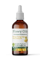 Flowy Oils Ylang Ylang Yağı 100 ML cam damlalıklı amber korumalı şişede gelmektedir.